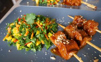Une recette rapide et savoureuse, simplisme à préparer et qui m’a permis d’utiliser l’excellent mélange d’épices « saté » de chez Olivier Roellinger. Le saté, ou satay, est à l’origine un mot indonésien signifiant brochette, qui s’est peu à peu répandu dans tout le sud-est asiatique pour désigner une sauce à base de cacahuète, plus ou moins pimentée. Le mélange d’épices proposé par Roellinger n’est pas très piquant (pourtant le piment fort est le premier ingrédient!), mais son parfum est particulièrement envoutant…