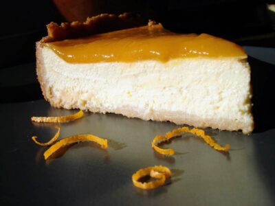 Préchauffer le four à 160°. Fouetter la ricotta et le fromage blanc ensemble jusqu’à ce que le mélange soit bien souple, ajouter 70 g de sucre, le jus des oranges et d’un citron ainsi que le zeste d’une orange finement râpé. Ajouter ensuite les oeufs un par un en prenant soin de bien les incorporer au mélange. Verser cet appareil sur le fond de biscuits, et enfourner pour une heure de cuisson. Laisser ensuite le cheese-cake refroidir complètement dans le four avant de le mettre au frais.