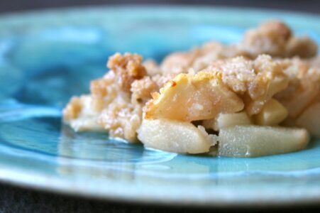 Je me demande si le crumble n’est pas la recette ayant le rapport complexité/plaisir le plus avantageux! On a toujours ce qu’il faut sous la main pour en faire un, c’est prêt en un clin d’oeil, et c’est inratable! L’alliance poires/gingembre fonctionne très bien, surtout à l’automne quand on a besoin d’un peu de réconfort. Cette fois, je devais réaliser un crumble sans gluten et j’ai utilisé de la farine de sarrasin sans trop savoir quel serait le résultat… en fait, cela apporte vraiment un plus, le petit goût grillé se marie à merveille avec les poires et le gingembre… je ne referai plus jamais ce crumble avec de la farine de blé!