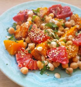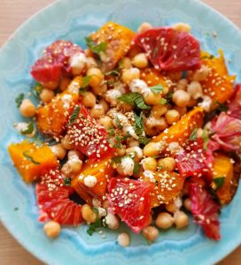 Salade de butternut rôtie, oranges sanguines, pois chiches et sésame