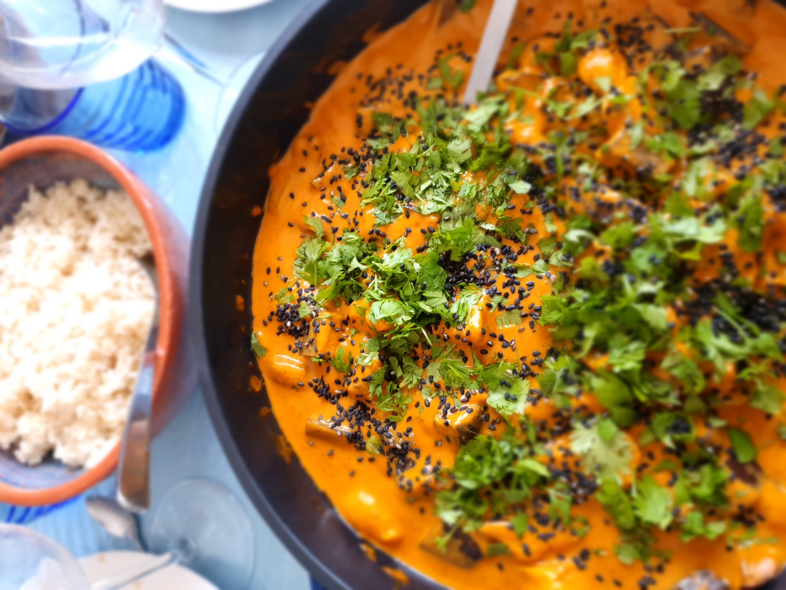 Il est juste important d’avoir de bonnes épices pour que le plat soit bien parfumé, et l’on peut bien sûr adapter selon ses goûts : je l’ai réalisée avec un mélange d’épices massala de chez Roellinger, d’excellente qualité, qui est bien sûr le secret de la réussite. Vous pouvez utiliser du curry, colombo, et ajouter un peu de cumin, de gingembre en poudre, voire de piment bien sûr si vous aimez ça!