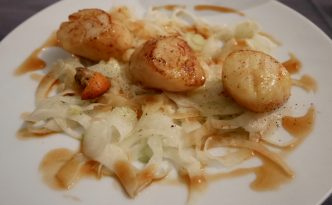 Noix de saint-jacques et fenouil, vinaigrette safranée aux agrumes